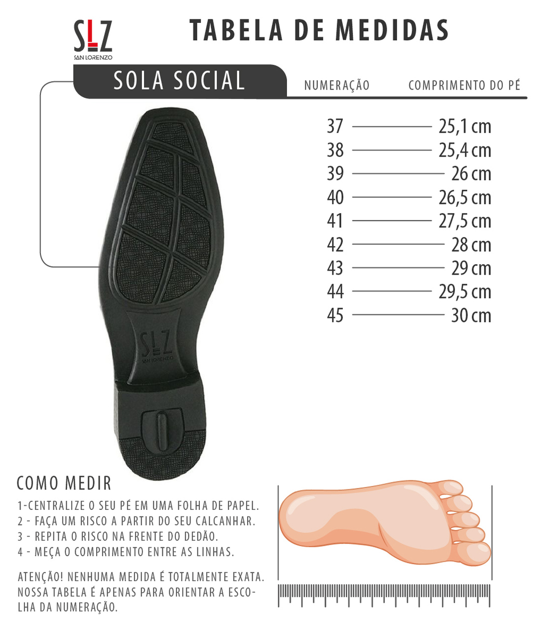 Quer garantir que o seu novo Sapato Social Clássico caiba perfeitamente? Certifique-se de conferir nossa tabela de medidas antes de fazer sua compra. Com as medidas precisas do seu pé, você pode ter a certeza de que o seu novo sapato será confortável e se encaixará perfeitamente. Não deixe de conferir a tabela de medidas antes de finalizar sua compra e garanta que o seu novo Sapato Social Clássico terá o melhor ajuste para você.